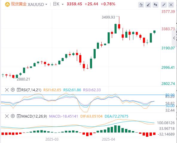 周二亚盘,黄金交投3359.45附近。受美元走软和避险需求推动,金价周一上涨近3%,现货黄金收报3333.73美元/盎司,较上周五收盘价上涨近100美元,市场正在等待美联储本周晚些时候的政策决定。本交易日将出炉美国3月份贸易帐,投资者需要予以关注,另外,需要继续关注地缘局势和国际贸易局势的相关消息。