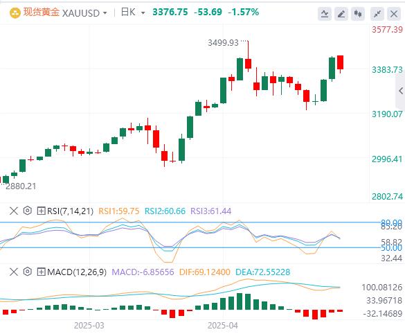 5月7日,北京时间周三亚市早盘,美元指数徘徊在99.53附近。周二,因美国3月贸易逆差扩大至创纪录的1405亿美元,美元指数全日震荡下行,最终收跌0.54%,报99.24。基准的10年期美债收益率收报4.3020%;对货币政策更敏感的两年期美债收益率收报3.7910%。因美国可能对进口药品征收关税,亚洲买家节后重返黄金市场,现货黄金周二再度大涨近100美元,最终收涨2.85%,报3431.11美元/盎司;周三亚盘初,黄金日内跌近1%,早盘跌近30美元,下触3400美元/盎司。现货白银周二收涨2.33%,报33.22美元/盎司。因亚欧需求增加、美国产量下降,以及以色列再度升级局势,国际油价大涨。WTI原油最终收涨3.18%,报58.97美元/桶;布伦特原油收涨2.84%,报62.01美元/桶。