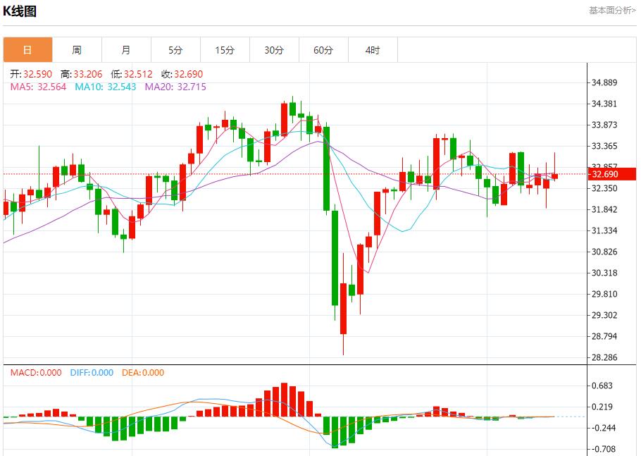 现货白银:截止北京时间20:18,现货白银上涨,现报32.688,涨幅0.34%。纽市盘前,(白银)价格在最近的盘中交易中上涨,超过了EMA50的负面压力,并受到(RSI)积极信号出现的支持,尽管其达到了超买水平,同时其交易伴随着短期基础上的看涨修正偏差。