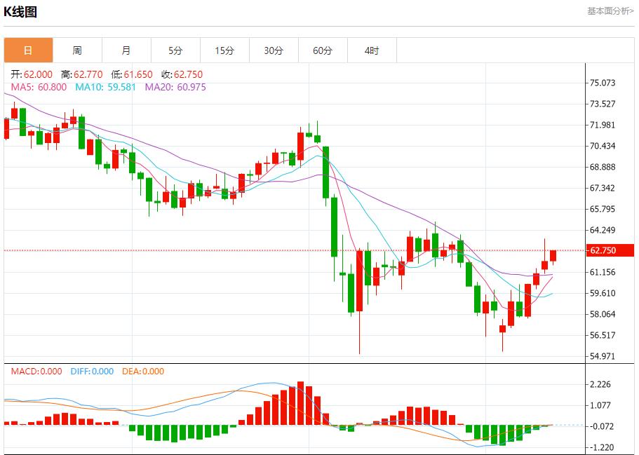 原油市场:截止北京时间20:18,美油上涨,现报62.740,涨幅1.29%。纽市盘前,(原油)价格在最近的盘中交易中上涨,再次稳定在61.70美元的阻力之上,这是开始复苏的信号,因为短期内牛市修正趋势占主导地位,同时出现一条斜线,RSI指标达到超卖水平,与价格走势相比被夸大,这表明开始形成正背离。