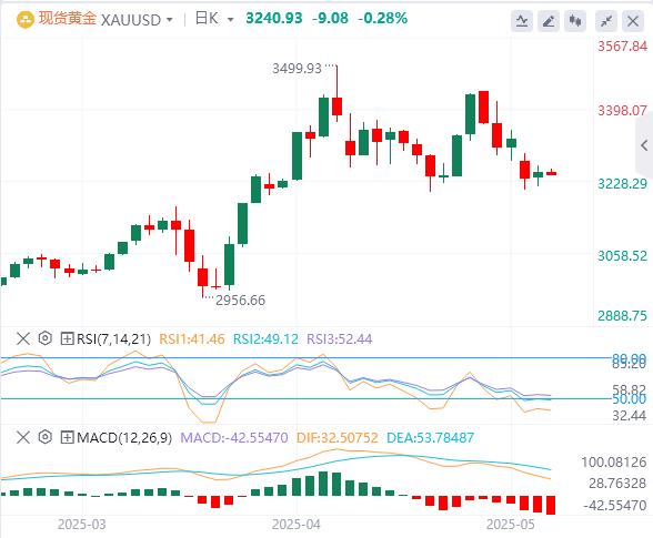 周三亚盘,黄金交投3240.93附近。在经历了周一的暴跌后,金价周二(5月13日)小幅反弹,现货黄金周二收报3249.86美元/盎司,涨幅达0.47%。逢低买盘的涌入给金价提供支撑,而且美国4月CPI属于弱于市场预期,美联储降息预期降温,美元指数从一个月高位回落,地缘局势担忧等因素都给金价提供上涨动能。本交易日经济数据相对较少,美国国务卿卢比奥于5月14日至16日参加北约外长非正式会议,讨论北约的安全优先事项,包括增加国防投资以及结束俄乌战争,此外,多位美联储官员将发表讲话,投资者需要予以关注。