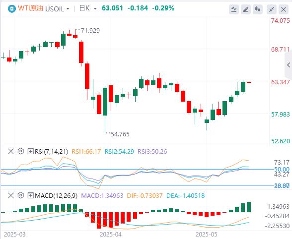 周三亚盘,原油交投63.05附近。原油期货周二每桶攀升逾1.60美元,受临时削减关税和好于预期的通胀报告提振。本交易日经济数据相对较少,美国国务卿卢比奥于5月14日至16日参加北约外长非正式会议,讨论北约的安全优先事项,包括增加国防投资以及结束俄乌战争,此外,多位美联储官员将发表讲话,投资者需要予以关注。