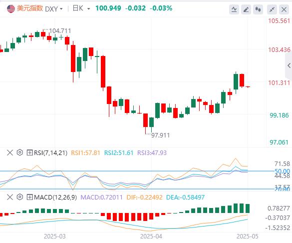 美元指数:截止发稿,美元指数徘徊在100.94附近。在与中国和英国的贸易承诺模糊的情况下,交易员仍然持谨慎态度,在特朗普总统推动雄心勃勃的投资和税收计划但未详细说明它们将如何影响经济后,出现了新的不确定性。尽管关税降级成为头条新闻,但惠誉对中国商品的有效关税税率仍高于40%,这加剧了人们对最近协议持久性的怀疑。技术面上,如果美元指数收于101.00水平以下,它将向最近的支撑位移动,该支撑位位于100.20–100.40区间。