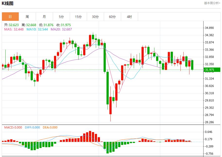 现货白银:截止北京时间20:24,现货白银下跌,现报31.957,跌幅2.01%。纽市盘前,(白银)价格在最近的日内交易中屈服于负面压力,由于阻力稳定在32.70美元,价格下跌,由于其交易低于EMA50,伴随着(RSI)负面背离的形成,在达到与价格当前移动和从那里出现的负面信号相比夸大的超买水平后,价格持续下跌。