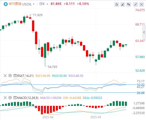 周一亚盘,原油交投61.98附近。尽管上周小幅上涨,但原油市场仍偏向短期看跌。OPEC+日益增长的实物供应风险和潜在的伊朗协议继续限制上行潜力。除非库存大幅下降或需求强劲反弹,否则近期油价预测将走低,交易员密切关注外交和库存方面的进一步发展。