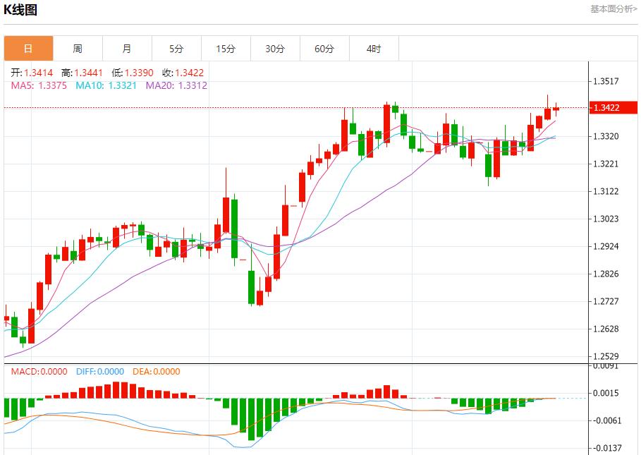 英镑/美元:截止北京时间20:28,英镑/美元上涨,现报1.3424,涨幅0.03%。纽市盘前,(GBPUSD)价格在最后一个交易日上涨,因其准备攻击1.3440处的顽固和关键阻力,受其在EMA50上方的持续交易支持,并在短期主要看涨趋势和沿一条斜线交易的主导下,价格成功地卸载了(RSI)的明显超买条件,从而重新获得了积极的动力。