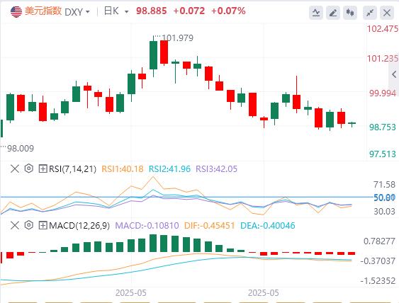 周三,随着美国经济数据疲软推升了降息预期,美元指数跌破99关口,重回六周低点,截至目前,美元报价98.88。