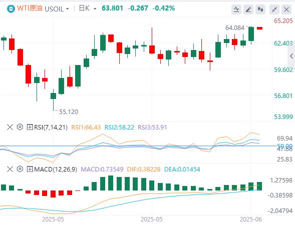 周一亚盘,原油交投63.80附近。原油价格上周五上涨逾1美元,创下三周以来首次周度上涨,受助于美国就业报告利好以及重启贸易谈判,这提升了人们对全球两大经济体增长的希望。接下来的一周,市场将迎来大国贸易磋商和重磅美国CPI数据,投资者需要重点关注。周一(6月9日)美国5月纽约联储1年通胀预期。另外,应英国政府邀请,中共中央政治局委员、国务院副总理何立峰将于6月8日至13日访问英国。其间,将与美方举行中美经贸磋商机制首次会议。投资者需要重点关注。