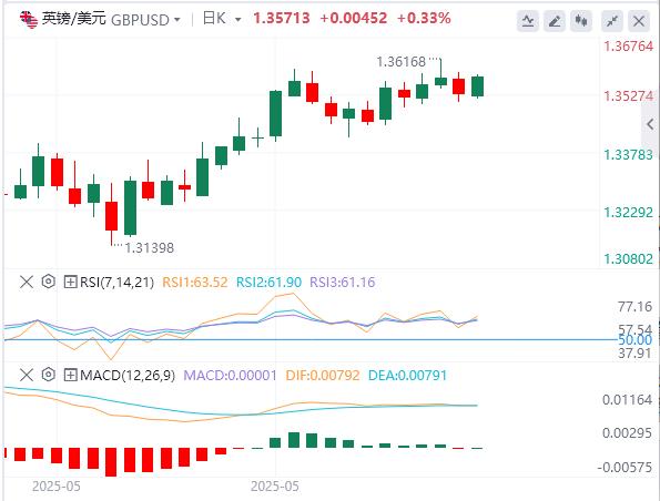 英镑/美元周五下跌约0.3%,但上周收于上涨区域。该货币对周一早盘重新获得牵引力,交投于1.3550上方。英国国家统计局将于周二公布4月份劳动力市场数据。