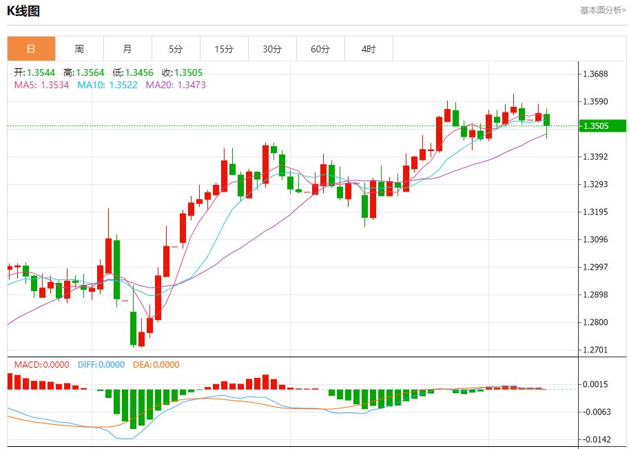 英镑/美元:截止北京时间20:26,英镑/美元下跌,现报1.3505,跌幅0.33%。纽市盘前,(GBPUSD)价格在达到超买水平后,在(RSI)上出现负面信号的情况下,在最后一个交易日下跌,价格试图获得积极的动力,这可能有助于突破1.3585的关键阻力,其在EMA50上方的交易所代表的动态支撑继续存在,并处于短期主要看涨趋势的主导下。