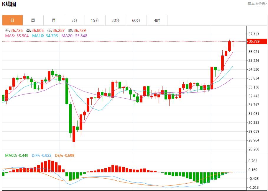 现货白银:截止北京时间20:26,现货白银上涨,现报36.738,涨幅0.02%。纽市盘前,(白银)价格在最后一个交易日上涨,此前卸载了(RSI)的超买条件,为实现更多收益提供了更大的空间,主要看涨趋势占主导地位,并且连续交易于EMA50上方,这代表了保持看涨走势的动态支撑。