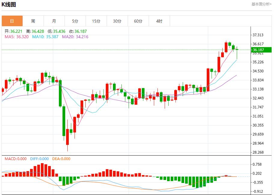 现货白银:截止北京时间20:20,现货白银下跌,现报36.196,跌幅0.06%。纽市盘前,(白银)价格在最后一个交易日上涨,此前由于其依赖于EMA50的支撑,加上关键支撑在35.90美元的稳定性,获得了强劲的看涨推动,提供了积极的动力,帮助其在达到超卖水平后,随着(RSI)上积极信号的出现,快速反弹。