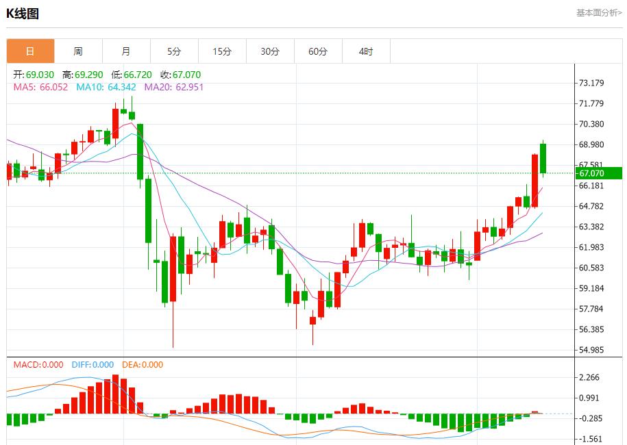 原油市场:截止北京时间20:20,美油下跌,现报67.060,跌幅1.60%。纽市盘前,(原油)价格在最近的盘中交易中下跌,在达到超买水平后,在(RSI)上出现负面信号,试图寻找更高的低点,以此作为基础,可能有助于其获得所需的积极复苏势头,在短期内主要看涨趋势占主导地位,沿着斜线,继续从EMA50上方的交易中获得积极的支持。