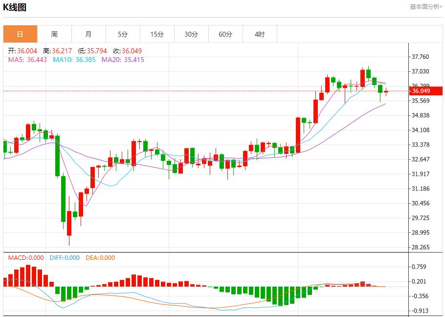 现货白银:截止北京时间20:23,现货白银上涨,现报36.048,涨幅0.13%。纽市盘前,(白银)的价格在最后一个盘中交易中上涨,受到(RSI)上出现积极信号的支持,注意到与价格走势相比进入夸张的超买水平,这表明失去了积极的势头,由于其交易低于EMA50而持续的负面压力,除了它在短期基础上突破小幅看涨趋势线和看跌修正浪的主导地位。