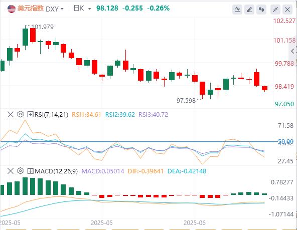 周一,美元指数亚盘震荡、欧盘触及99.40,后因美盘期间美联储官员的鸽派言论下跌失守99美元关口,截至目前,美元报价98.12。