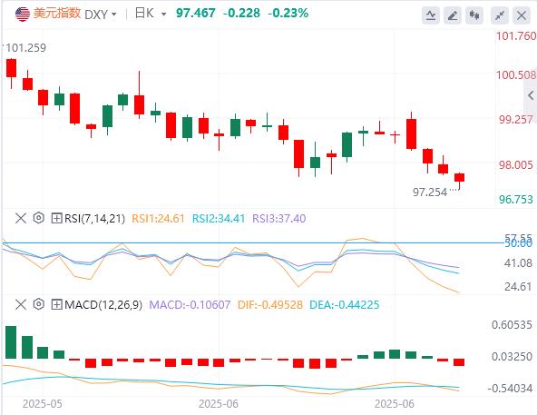 周三,因特朗普宣布下周美方将与伊朗会谈,避险情绪缓解,且市场普遍预期美联储将很快恢复其降息周期,截至目前,美元报价97.46。