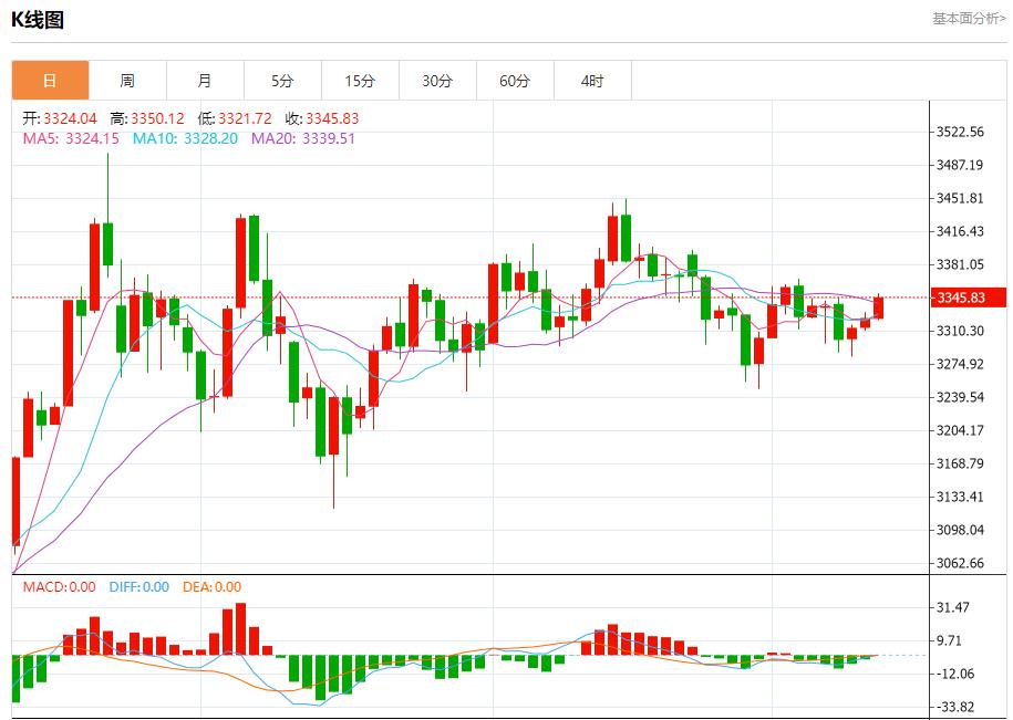 现货黄金:截止北京时间20:23,现货黄金上涨,现报3345.59,涨幅0.66%。纽市盘前,在超过来自EMA50的负面压力后,(黄金)价格在最后一个盘中交易中上涨,提供了积极的势头,帮助其突破了限制其短期走势的看跌修正偏见。