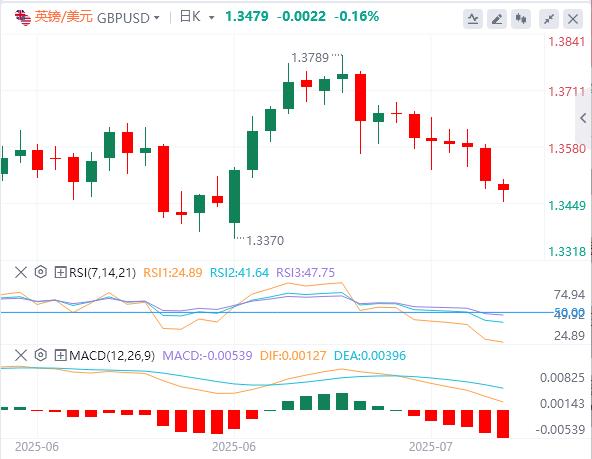 英镑/美元在1.3450附近守住较低位置,延续了从多年高点的修正,因为对风险敏感的英镑兑美元进一步下跌。