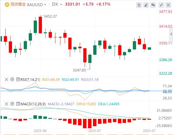 周三亚盘,黄金徘徊在3331.01附近。特朗普称将很快对小国发送关税信函,税率或略高于10%,给金价提供避险支撑。对于投资者而言,当前的黄金市场既充满挑战,也蕴含机遇。短期内,金价可能继续在3300美元至3400美元的区间内震荡,但长期来看,地缘政治风险、通胀预期以及货币政策的宽松趋势都可能为金价提供上行动力。建议投资者密切关注即将公布的PPI数据以及特朗普政府关税政策的最新进展,同时保持对美元和债券收益率走势的关注,以把握黄金市场的投资机会。