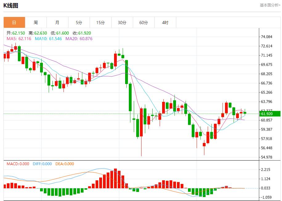 原油市场:截止北京时间20:20,美油下跌,现报61.910,跌幅0.34%。纽市盘前,(原油)价格在日内水平波动交易,在短期基础上的看涨修正趋势占主导地位,并沿着一条斜线交易,由于其在EMA50上方交易,正压力持续,另一方面,我们注意到(RSI)上负面信号的出现。
