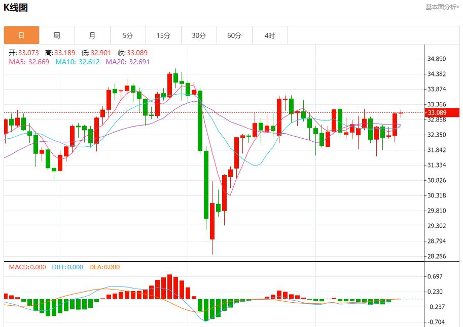 现货白银:截止北京时间20:18,现货白银上涨,现报33.093,涨幅0.10%。纽市盘前,(白银)价格在最近的盘中交易中上涨,由于其在EMA50上方交易而持续受到正面压力,受短期基础上突破一条次要看跌偏向线的影响,加强了看涨场景,另一方面,我们注意到(RSI)在达到超买水平后出现了负面信号,这可能会减少即将到来的收益。