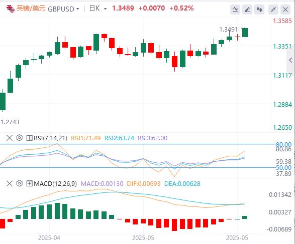 英镑/美元蓄势待发,交投于2022年2月以来的最高水平1.3500附近。