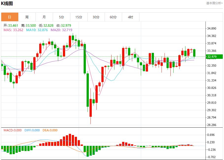 现货白银:截止北京时间20:21,现货白银下跌,现报32.991,跌幅1.40%。纽市盘前,(白银)价格在最近的盘中交易中下跌,试图获得可能有助于其再次上涨的积极势头,同时在短期基础上沿着看涨趋势线交易,继续承受来自其EMA50上方交易的积极压力,注意到(RSI)达到超卖水平,与价格波动相比被夸大了。