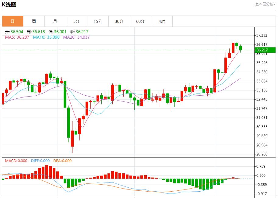 现货白银:截止北京时间20:21,现货白银下跌,现报36.218,跌幅0.77%。纽市盘前,在(RSI)上出现负面信号的情况下,白银价格在最后一个交易日下跌,价格试图寻找更高的低点,以此作为基础,可能有助于其获得恢复和再次上涨所需的积极动力,主要看涨趋势在短期内占主导地位,并沿着一条偏向线交易,继续获得来自EMA50上方交易的积极支持。
