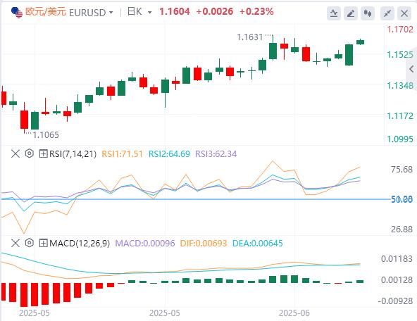 美元指数:截止发稿,美元指数徘徊在98.15附近。中东冲突的动荡演变引发了美元市场的看跌转向,投资者押注于报复性导弹攻击的减缓。美联储(Fed)主席杰罗姆·鲍威尔也将在政府听证会上发表讲话,开启为期两天的国会和参议院经济委员会的演讲。市场的关注将更加集中在美联储主席鲍威尔身上,投资者期待看到美联储将如何应对美国总统特朗普对美联储不愿降息的持续嘲讽,而降息可能有利于特朗普的预算赤字膨胀法案。技术面上,如果美元指数收于98.51的50MA下方,它将走向98.00–98.20的支撑位。