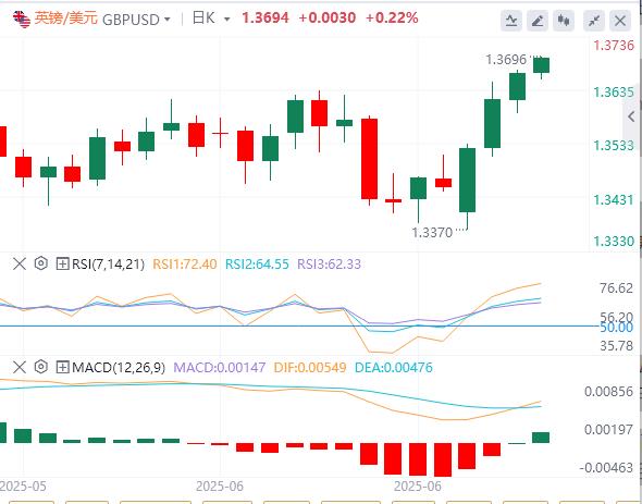 美元指数:截止发稿,美元指数徘徊在97.49附近。上周的地缘政治紧张局势支撑了美元。但随着特朗普总统庆祝以色列和伊朗之间的迅速解决,并对未来与德黑兰的外交表示乐观,风险情绪已经发生了转变。技术面上,美元指数继续尝试收于最近的支撑位98.00–98.20下方。如果美元指数保持在98.00水平下方,它将朝着下一个支撑位96.70–96.90迈进。
