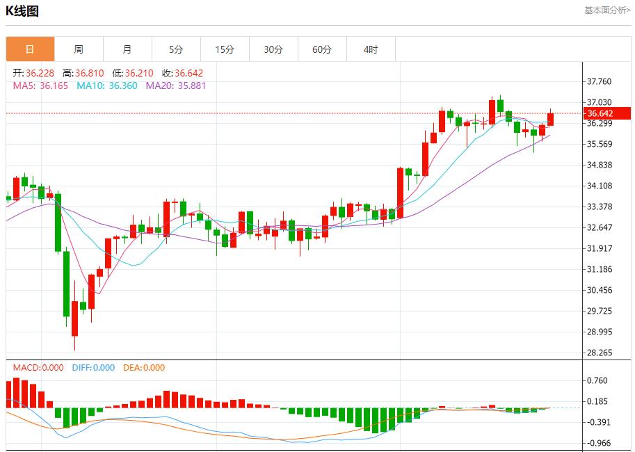 现货白银:截止北京时间20:23,现货白银上涨,现报36.643,涨幅1.12%。纽市盘前,(白银)价格在最后一个盘中交易中收高,此前从我们的早间目标36.85美元的阻力处逼近,受其EMA50上方交易的支撑,受短期形成积极技术(即上升楔形形态)的影响,达到这些水平代表达到该形态的目标,这使其在达到超买水平后失去了积极的动力,特别是随着(RSI)上负面信号的出现。