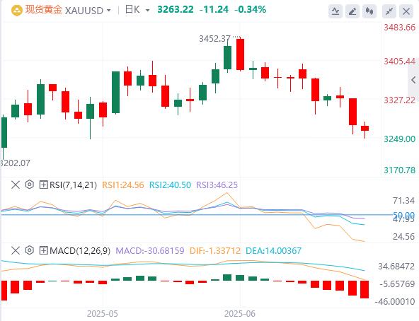 周一亚盘,黄金交投3263.22附近。周一亚市早盘,黄金扩大跌幅至3265美元左右。在美中贸易协议提振风险偏好后,贵金属跌至近一个月低点。投资者等待周一晚些时候的美联储讲话,以寻找新的动力。