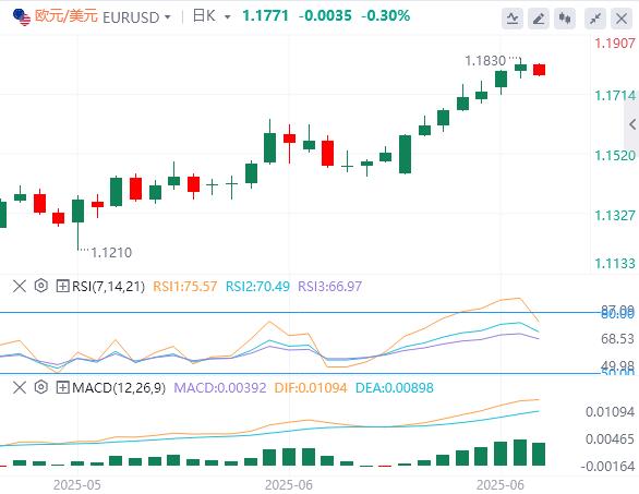 欧元/美元周二触及多年新高1.1830,但回吐了部分日涨幅,收盘小幅走高。周三早些时候,该货币对保持低迷状态,交易价格低于1.1800。欧元区数据显示,失业率从4月份的6.2%小幅上升至5月份的6.3%。