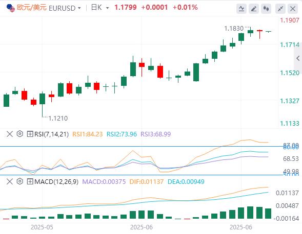 7月3日,北京时间周四亚市早盘,美元指数徘徊在96.75附近。周三,美元指数小幅反弹,盘中一度重回97关口上方,但随后回吐部分涨幅,最终收涨0.13%,报96.77;基准的10年期美债收益率收报4.284%,2年期美债收益率收报3.797%。因弱于预期的“小非农”引发了人们对美联储将更早降息的希望。现货黄金在美盘时段突破3350美元关口,最终收涨0.55%,收报3357.15美元/盎司;现货白银最终收涨1.46%,报36.54美元/盎司。因伊朗暂停与联合国核监督机构的合作,美国和越南达成贸易协议,两油日内一度大涨3%。WTI原油在欧盘时段开启涨势,并在美盘重回66美元上方,最终收涨2.82%,报66.62美元/桶;布伦特原油收涨2.7%,报68.73美元/桶。