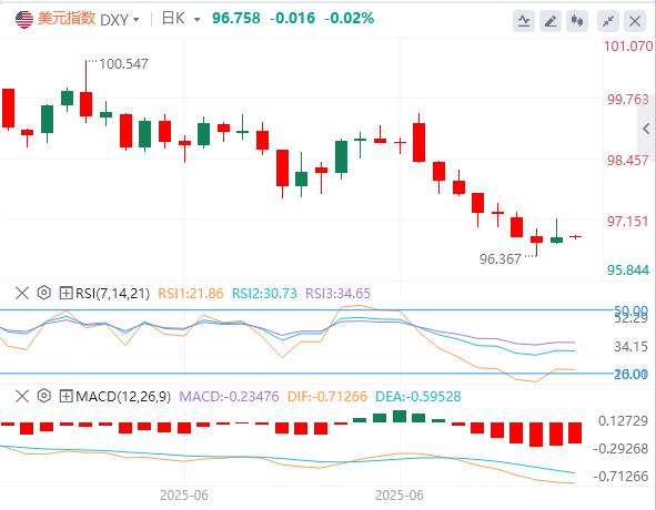 美元指数:截止发稿,美元指数徘徊在96.75附近。尽管在周四美国劳动力市场关键数据发布之前,美元仍面临压力,并且对贸易方面的担忧持续存在,但美元周三显示出复苏迹象并出现了有意义的反弹,摆脱了兑其他货币的多年低点区域。技术面上,如果美元指数升至97.00水平上方,它将朝着97.54的50MA迈进。