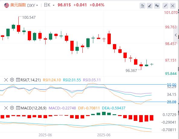 周三,美元指数小幅反弹,盘中一度重回97关口上方,但随后回吐部分涨幅,截至目前,美元报价96.81。