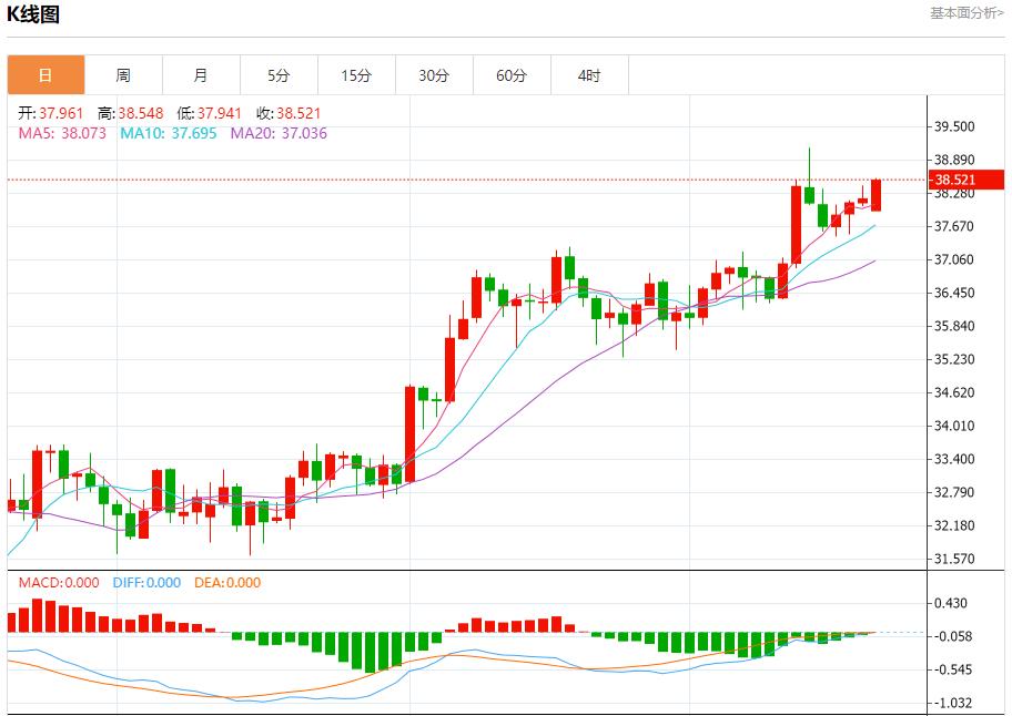 现货白银:截止北京时间20:23,现货白银上涨,现报38.521,涨幅0.89%。纽市盘前,(白银)价格在最后一个交易日上涨,主要看涨趋势在短期基础上占主导地位,并沿着一条斜线交易,持续上涨的积极压力来自其在EMA50上方的持续交易,这一上涨是在价格成功卸载其在(RSI)上的超买条件后发生的,为更多的日内上涨开辟了道路。
