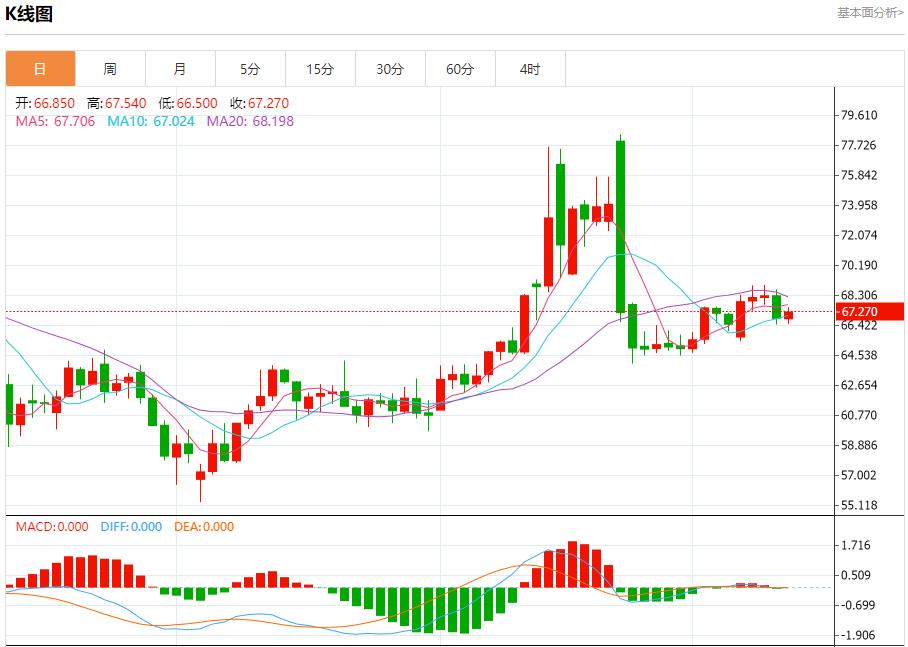 原油市场:截止北京时间20:23,美油上涨,现报67.240,涨幅1.04%。纽市盘前,(原油)在最后一个盘中交易中收于低位,依靠关键支撑位66.00美元,伴随着价格依靠MA50的支撑,此外还在短期内测试主要看涨趋势线,表明支撑位稳定。