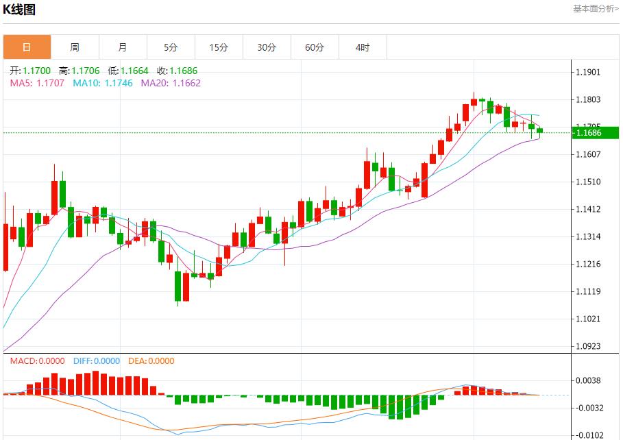 欧元/美元:截止北京时间20:23,欧元/美元下跌,现报1.1686,跌幅0.11%。纽市盘前,欧元兑美元在最后一个盘中交易中下跌,受短期看跌修正趋势持续的影响,并沿着看跌偏置线移动,突破了关键支撑位1.1685,该支撑位代表了我们在昨天预测中提到的目标,表明抛售压力持续。