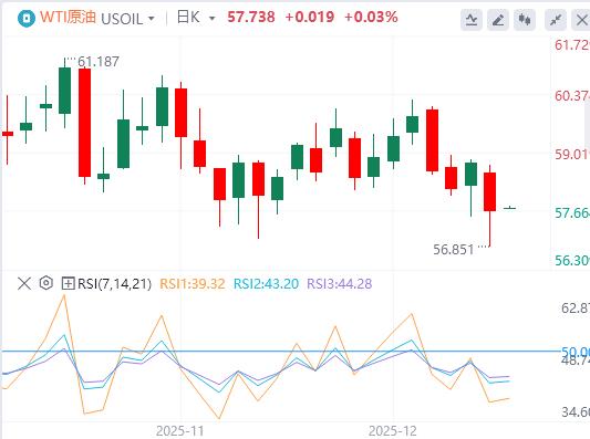 周五亚盘,原油交投57.73附近。油价周四下跌,主要受到地缘政治局势变化和美国燃料库存过剩的双重压力。