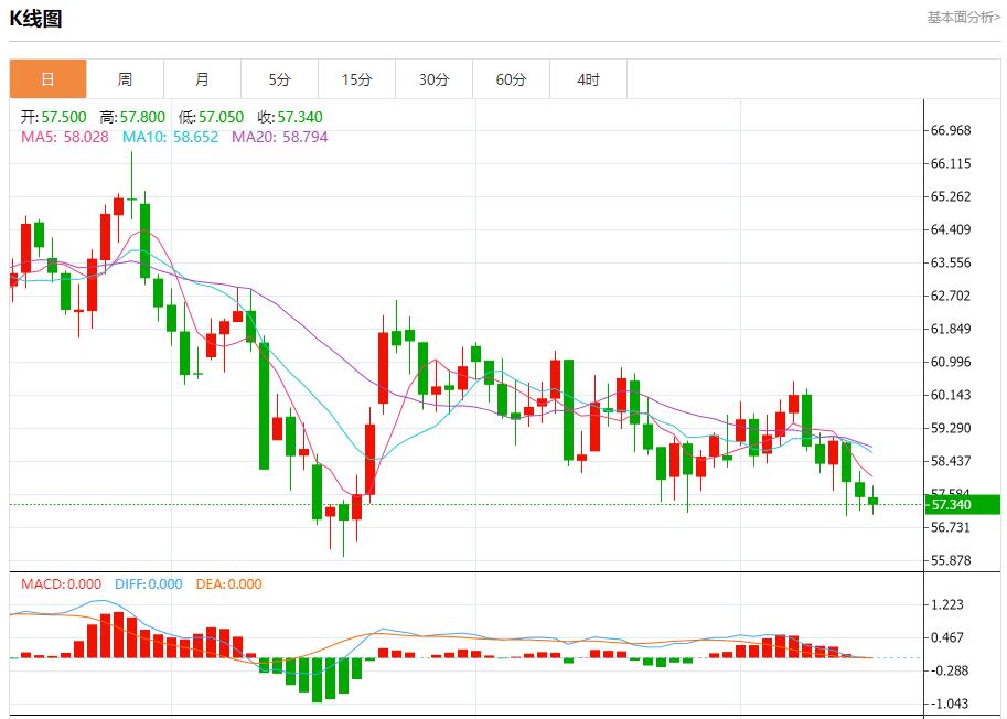 原油市场:截止北京时间21:20,美油下跌,现报57.320,跌幅0.21%。纽市盘前,(原油)价格在最近一次盘中交易中下跌,跌破关键支撑位57.35美元,这是由于其交易价格低于EMA50,同时盘中沿着陡峭的小幅看跌趋势线交易所持续的负面压力所致。尽管相对强弱指标出现了积极信号,但上一次的下跌表明新的卖盘力量正在出现,以在未来一段时间内扭转局面。