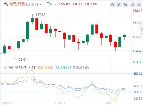 澳大利亚12月消费者通胀预期升至4.7%,澳元兑美元周三下跌0.4%后于0.6600窄幅整理,显示商品货币对通胀预期敏感度上升。日元则随美元走强承压,美元兑日元延续反弹逼近156.00,日本央行周五利率决议前市场保持谨慎。新西兰三季度GDP年增1.3%符合预期,但纽元兑美元未能受益,下跌0.2%至0.5760,凸显商品货币整体承压态势。