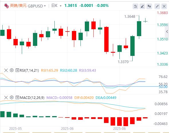 伊朗和以色列接受停火的消息周二引发了风险反弹,并导致美元(USD)走软。在美国交易时段,鲍威尔主席的言论帮助美元限制了损失。鲍威尔重申,他们并不急于下调政策利率,并补充说,他们需要更多时间来确认关税造成的通胀压力将继续得到控制。在当天收盘小幅走低后,美元指数周三欧洲早盘在98.00附近窄幅波动。