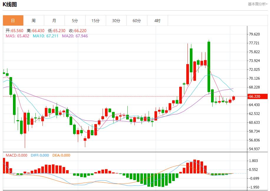 原油市场:截止北京时间20:23,美油上涨,现报66.210,涨幅1.16%。纽市盘前,(原油)在65.56美元阻力和63.70美元支撑之间保持窄幅震荡,表明市场处于混乱和预期状态,等待新的动机推动价格突破这一区间。