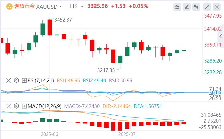 周二亚盘,黄金徘徊在3325.96附近。美国劳工部披露的数据显示,美国申请失业救济金的人数低于估计值和前值,表明经济稳健。因此,市场参与者的乐观情绪仍然很高,限制了黄金的上涨,而黄金的涨势也受到美国国债收益率高企的压力。