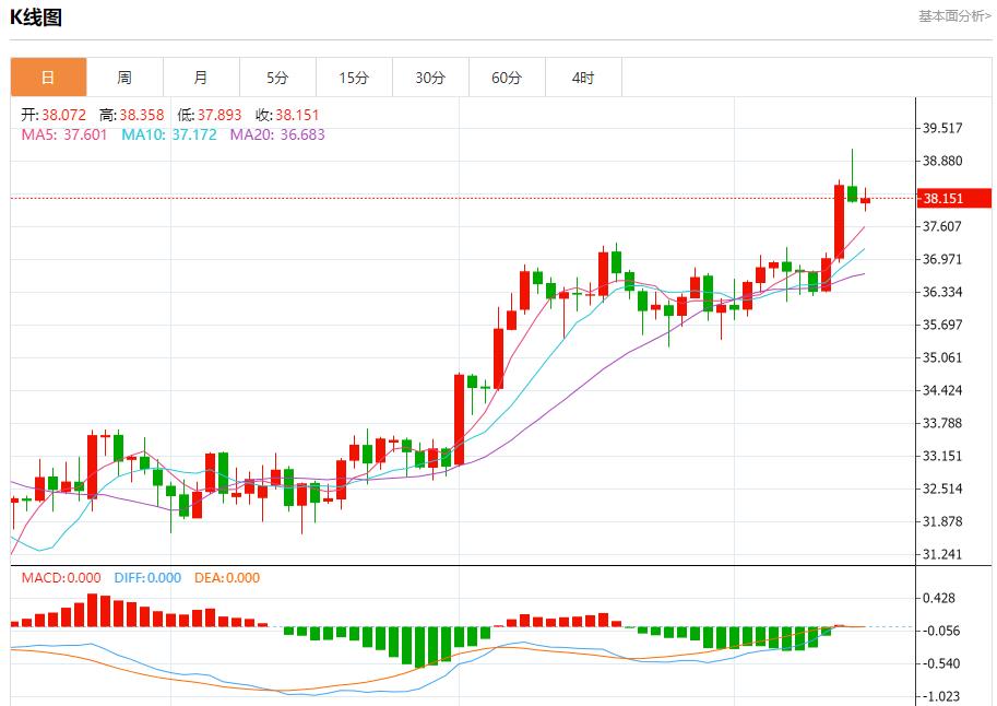 现货白银:截止北京时间20:23,现货白银上涨,现报38.130,涨幅0.07%。纽市盘前,(白银)价格在最近一个交易日内经历了波动交易,此前其下跌的目标是寻找一个上涨的低点,以此为基础,以此为基础,帮助其获得恢复所需的积极动力,注意到在达到超卖水平后,形成了(RSI)的积极背离,从那里开始出现积极信号,这是在短期基础上的主要看涨趋势占主导地位及其沿着趋势线交易的情况下出现的。