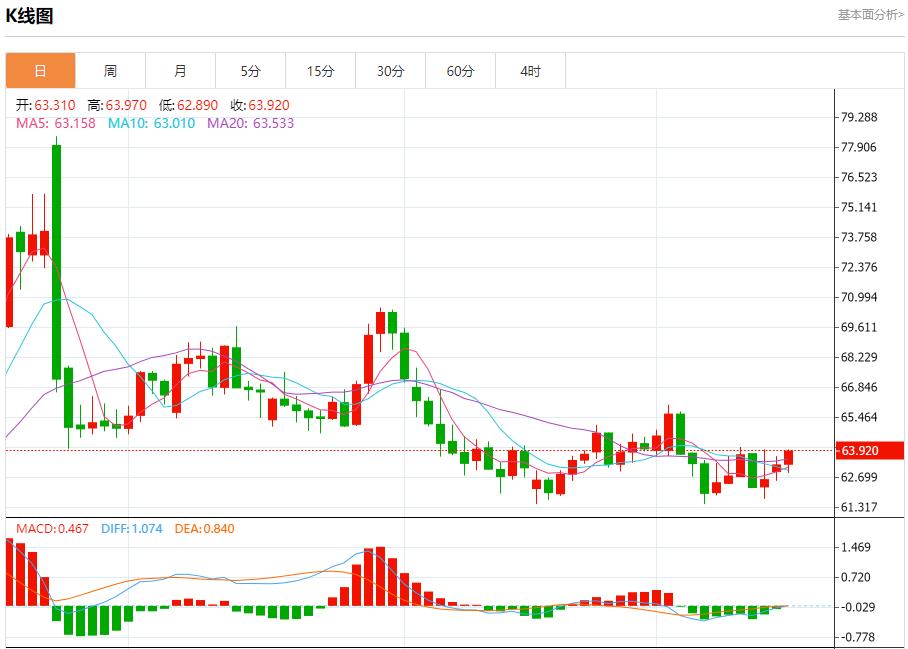 原油市场:截止北京时间20:23,美油上涨,现报63.920,涨幅1.01%。纽市盘前,原油价格在最后一次日内交易中下跌,因受到62.85美元的阻力稳定的负面压力影响,同时触及EMA50的阻力,加剧了负面压力,在短期内主要看空趋势的主导下,其交易水平与倾斜线相伴,减少了短期内反弹的可能性。