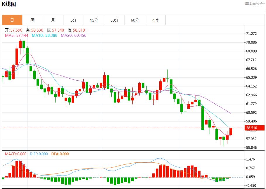 原油市场:截止北京时间20:23,美油上涨,现报58.490,涨幅2.22%。纽市盘前,在最近一次盘中交易中,(原油)价格上涨,此前它成功突破了EMA50的负面压力,并得到了相对强弱指标出现的积极信号的支持,在短期内攻击主要的看跌趋势线,进一步加强了正面压力。