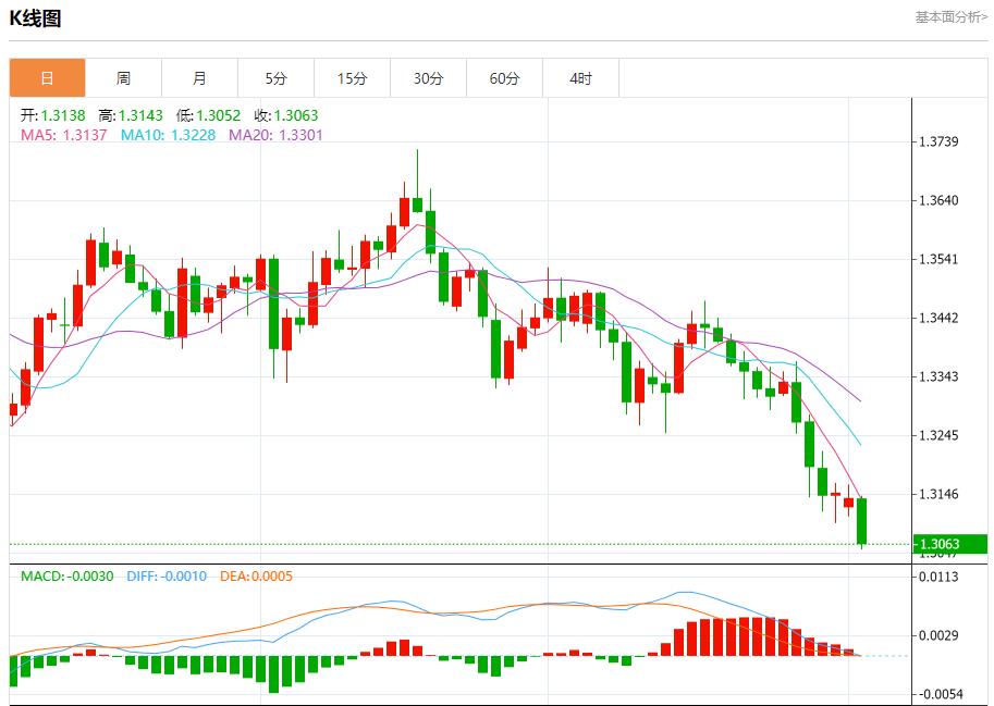 英镑/美元:截止北京时间20:20,英镑/美元下跌,现报1.3064,跌幅0.58%。纽市盘前,(GBPUSD)价格在最近的盘中交易中略有下跌,准备突破当前的支撑位1.3110,这也是我们在之前分析中预期的目标,同时其仍低于EMA50的交易体现了持续的动态压力,这降低了近期价格回升的可能性。在短期内,主要的看跌趋势完全占据主导地位,且价格沿趋势线运行。