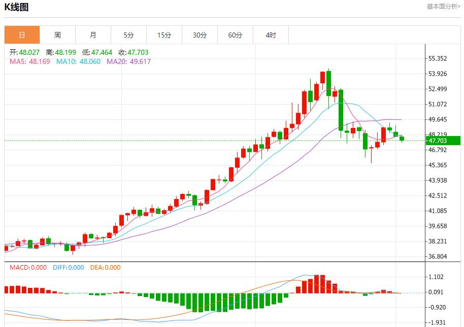 现货白银:截止北京时间20:20,现货白银下跌,现报47.711,跌幅0.73%。纽市盘前,(白银)价格在最近的日内交易中出现波动,由于其交易价格低于EMA50,并在短期内受空头修正趋势的主导,同时突破小型多头通道范围的影响,因此存在下行压力。另一方面,我们注意到在相对强弱指标达到超卖水平后出现了正向交叉,这有助于价格暂时企稳。